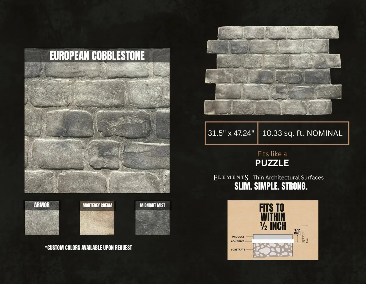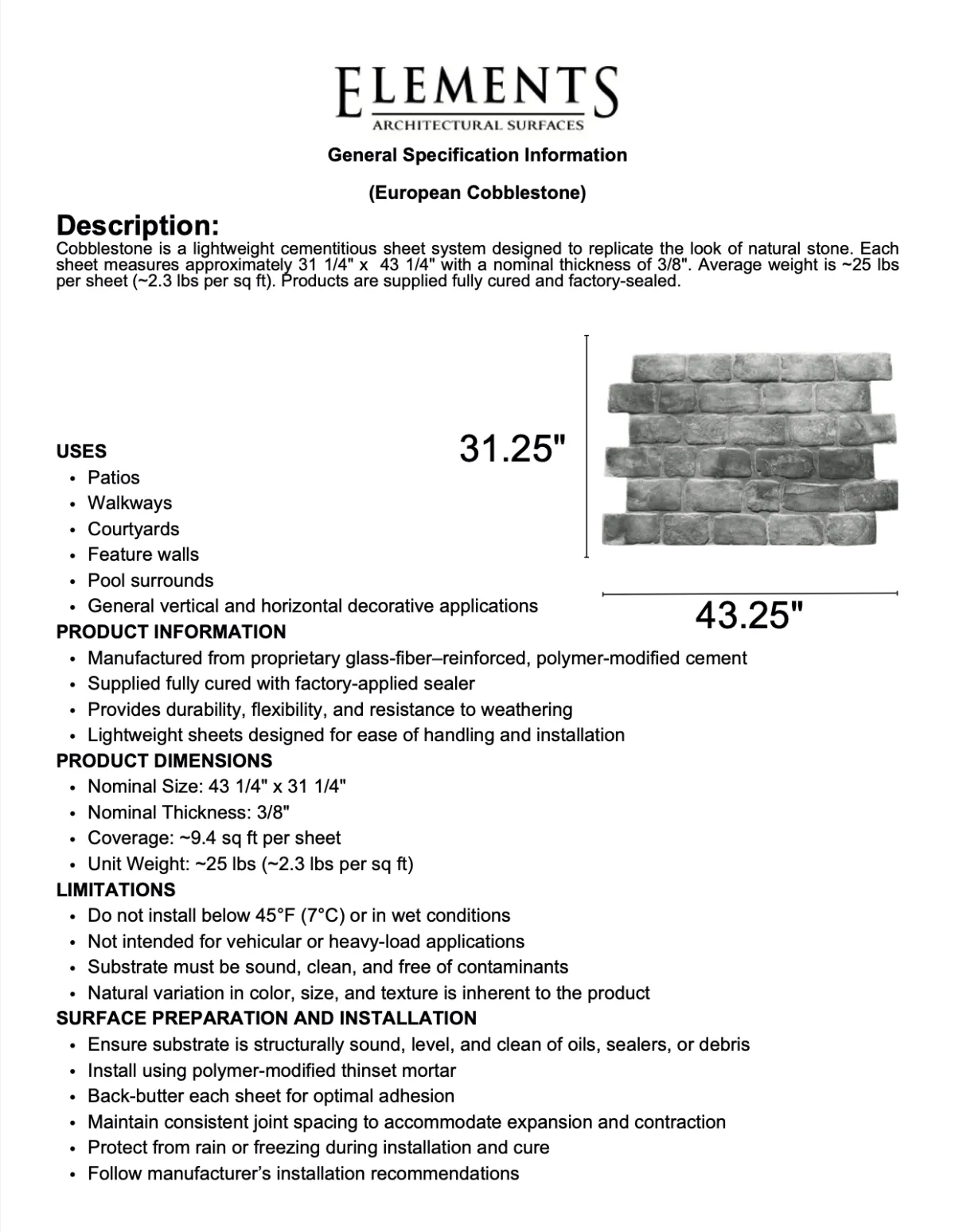 Each Cobblestone Panel is precision-cast in our facility using our proprietary concrete blend and integral color system to ensure consistent tone, strength, and texture. Every panel is hand-finished to highlight the natural variation and tactile richness of authentic stonework, resulting in a surface that blends traditional character with contemporary performance.